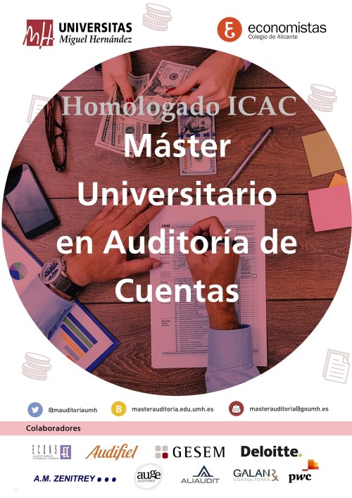 La Universidad Miguel Hernández de Elche, en colaboración con el Colegio de Economistas de Alicante, organizan el Máster en Auditoría 2020/2021, un estudio de especialización orientado al mercado laboral de la auditoría de cuentas y del asesoramiento y consultoría de empresas para los que se requiere una alta cualificación contable y financiera. Más información Acceso […]